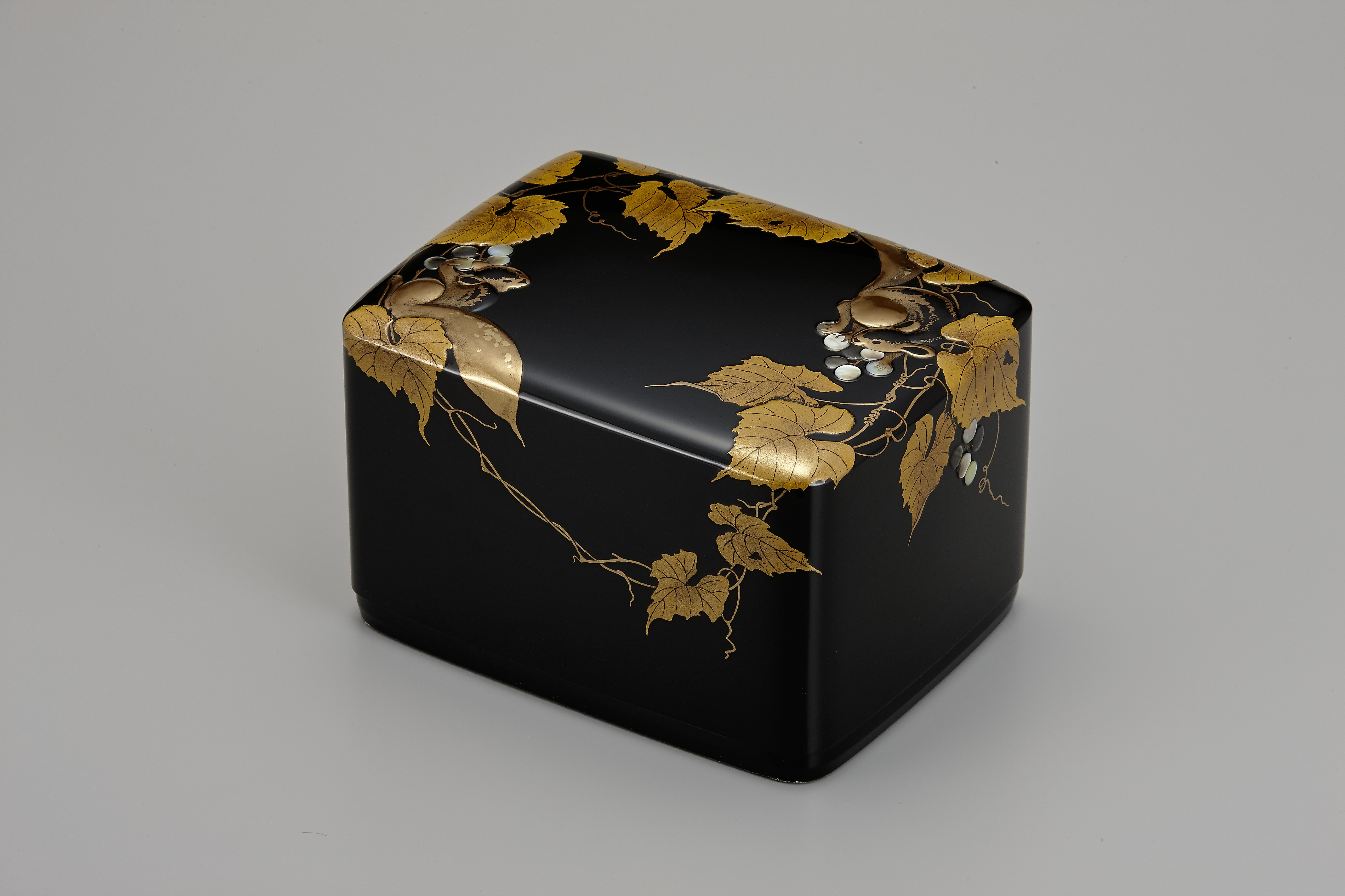 《栗鼠に葡萄文蒔絵箱》